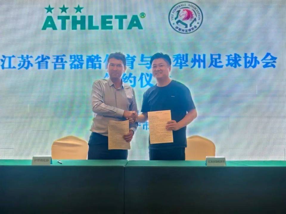 作为江苏省体育发展基金会理事单位、江苏足协副主席单位,江苏省吾器酷体育产业有限公司与伊犁州足协签署赞助合作协议,未来三年吾器酷将为伊犁州足协提供百万元的足球装备赞助,助力伊犁州足球的发展。